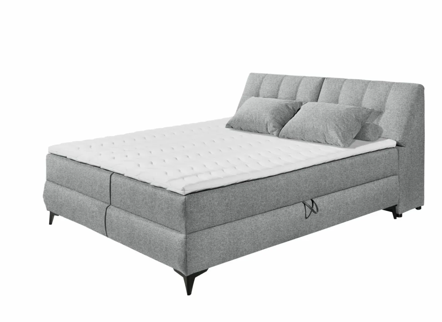 De bedbox heeft 4 opbergruimtes: 2 aan de zijkant onder de matras en 2 aan het hoofdeinde die opengeklapt kunnen worden.