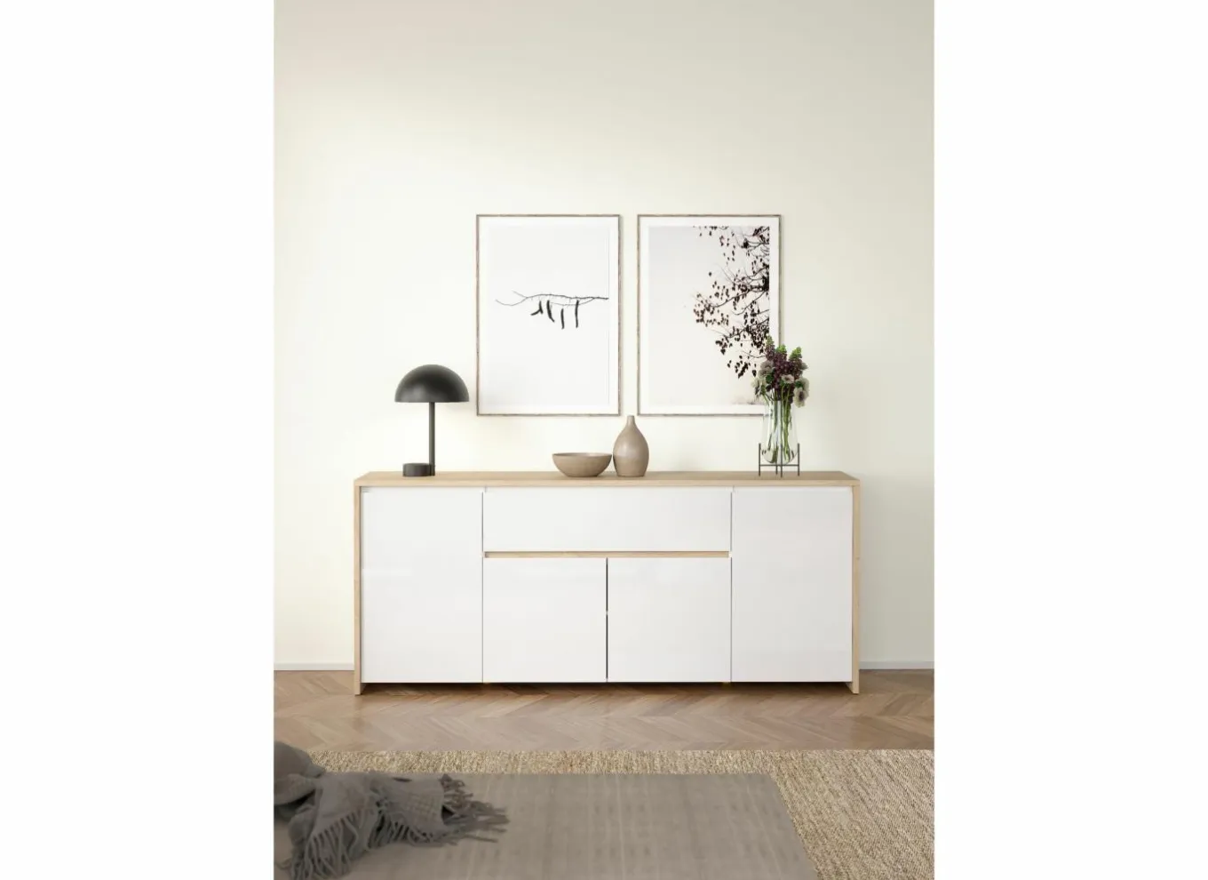 Eetkamer Cronos decor eik met 4 stoelen Crux – tafel 210x100cm – dressoir 218cm – kast 130cm