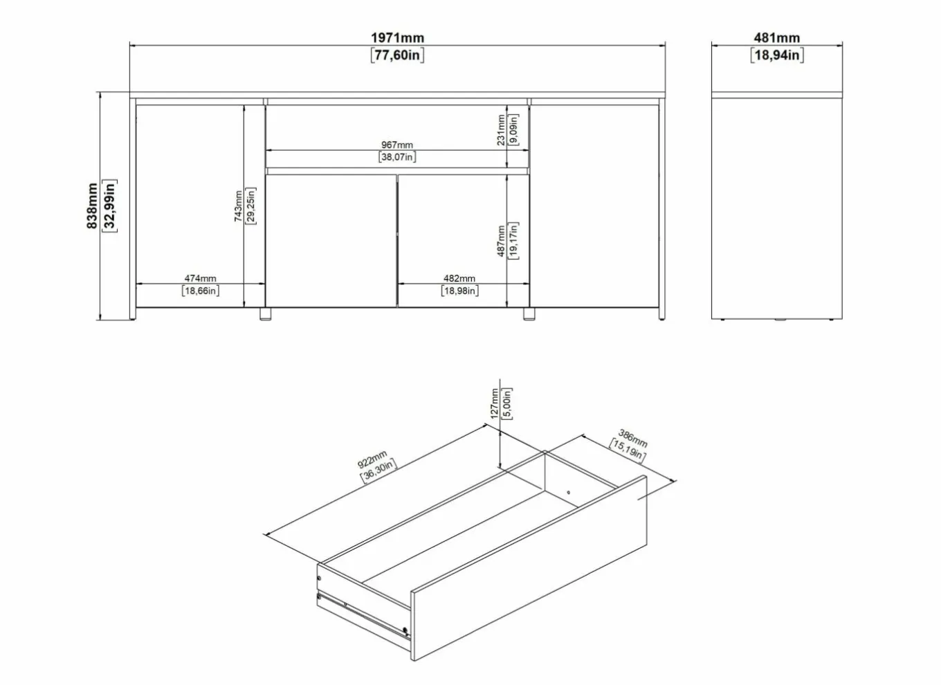| Materiaal | Meubelplaat afgewerkt met melamine |