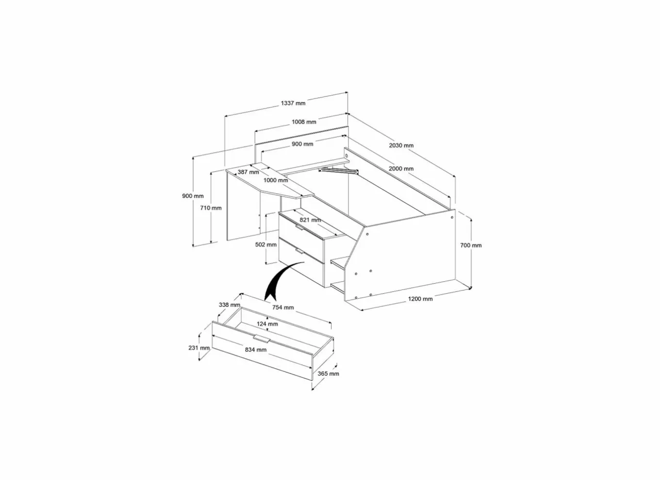 | Ligoppervlak | 90x200cm, 90x190cm |