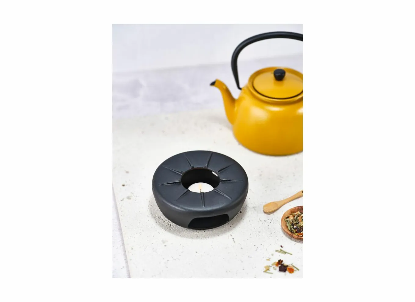 Deze rechaud met zachte rondingen in gietijzer past perfect bij theepotten, maar kunt u ook gebruiken om uw potten en gerechten warm te houden.