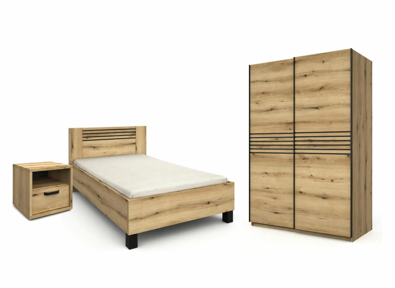 Slaapkamer Attaylar met bed 180x200cm – kleerkast 230cm – 2 nachtkastjes