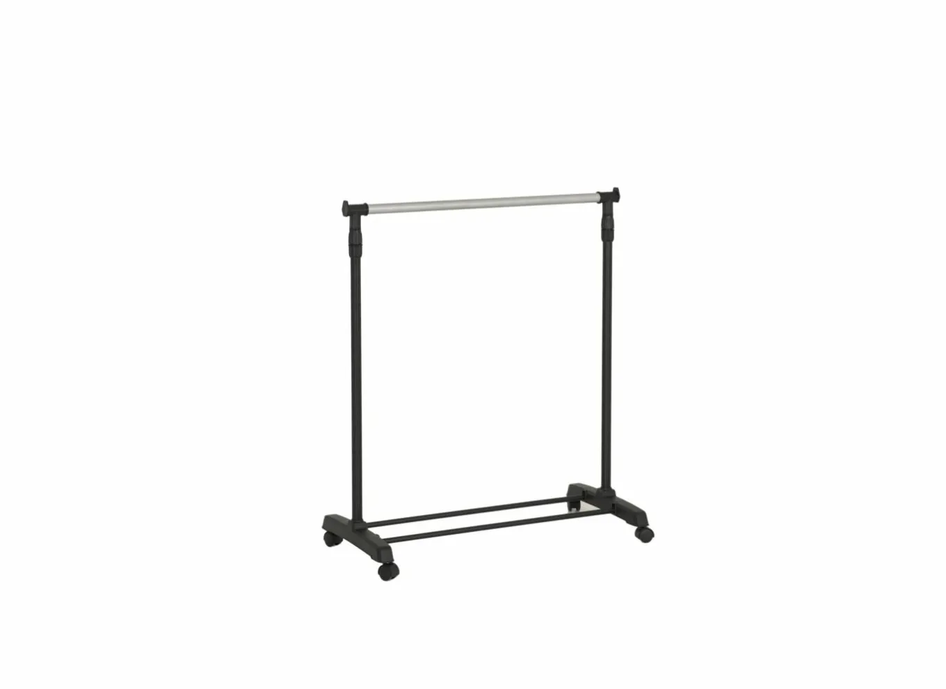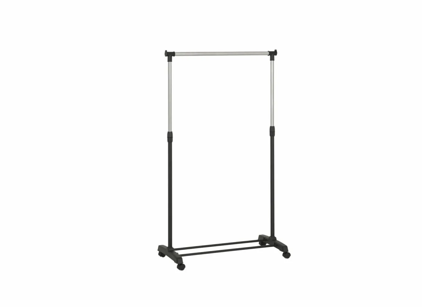 Het rek is gemaakt van metaal in chroomkleur en voorzien van zwarte wielen, waardoor het eenvoudig te verplaatsen is. Bovendien is het in hoogte verstelbaar van 100 tot 170 cm, zodat je zowel korte kledingstukken als langere jassen of jurken moeiteloos kunt ophangen.