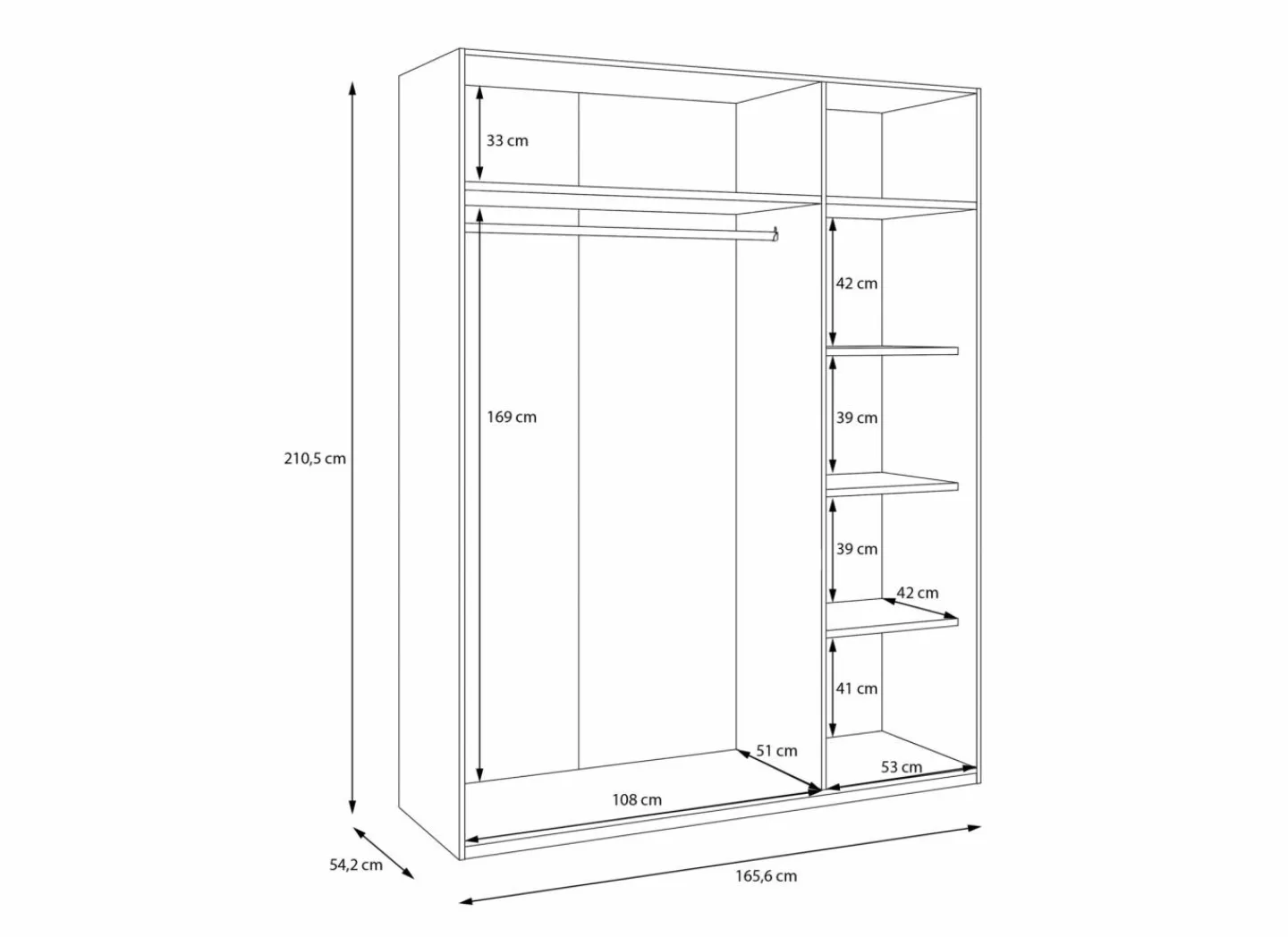 ✓ Ruime opbergmogelijkheden – combinatie van legplanken en een hanggedeelte