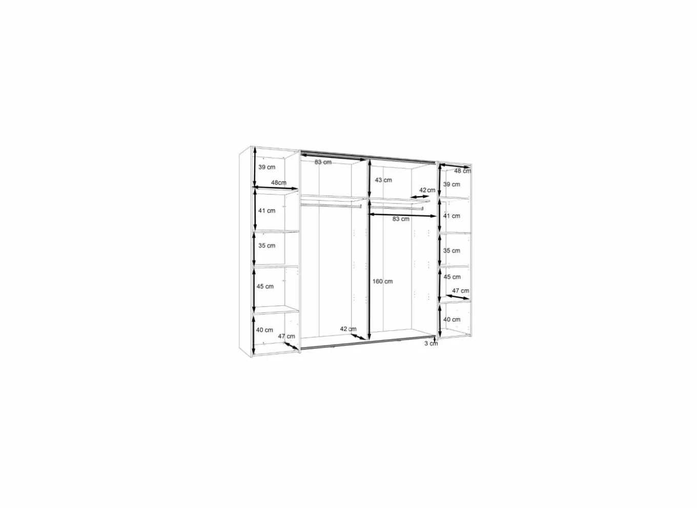 Achter elke schuifdeur is 1 legplank en 1 hangbaar inbegrepen.