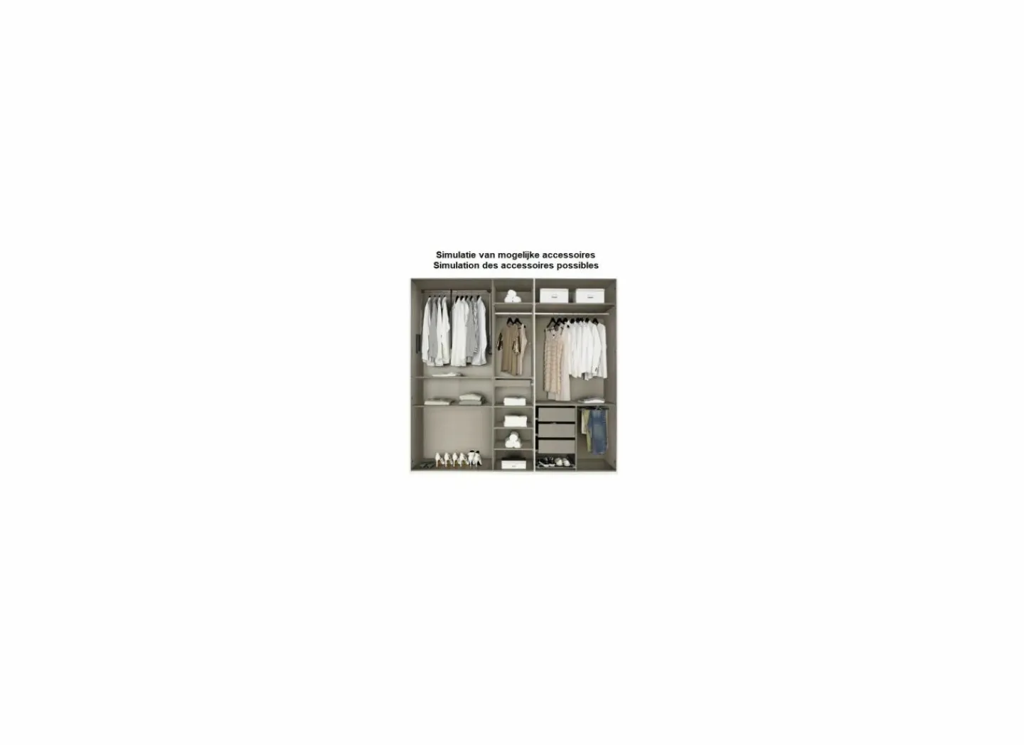 In onze winkels kun je jouw droomkast naar eigen wens ontwerpen en indelen. Twijfel je? Vraag dan advies aan een van onze specialisten – zij helpen je graag bij het maken van de juiste keuze.