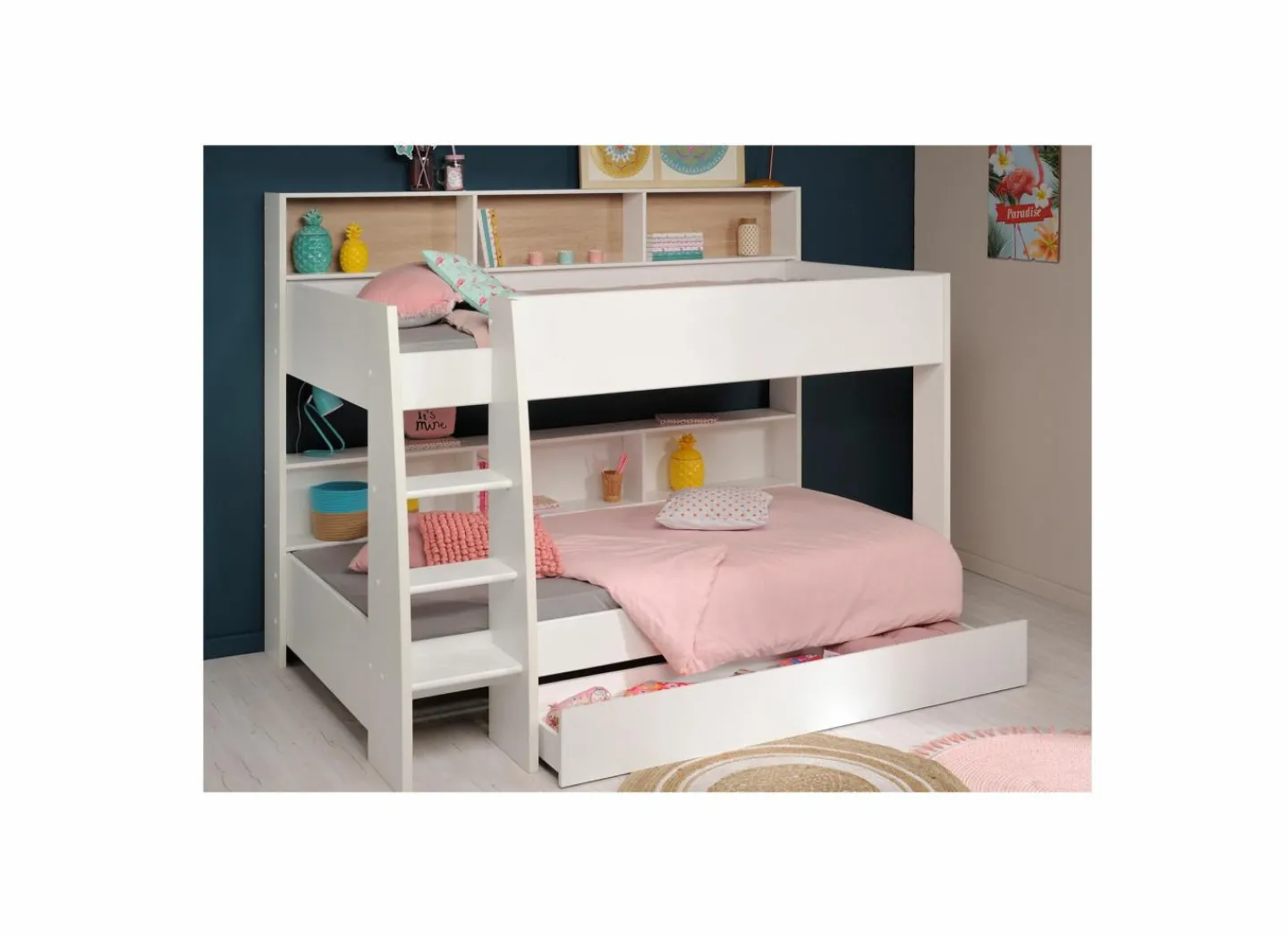 De kleur van de rugzijde kan je tijdens de montage zelf bepalen. De rugzijde kan zowel met de witte zijde als met de eiken kant naar voren gemonteerd worden.