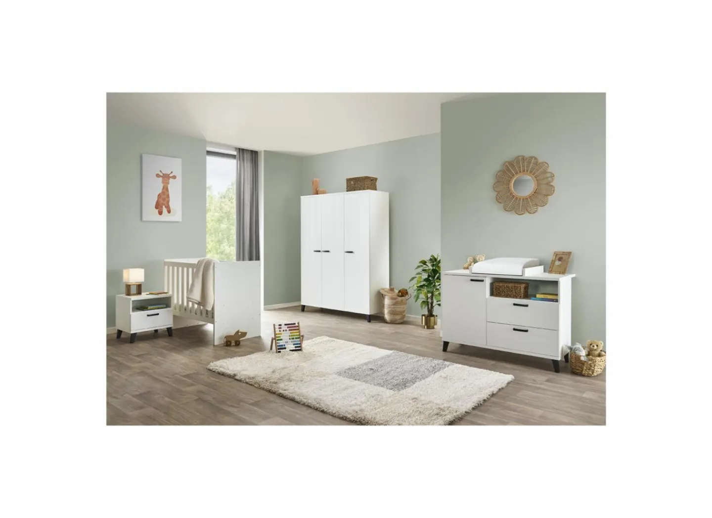Dit babybed is omvormbaar via de 2 extra sponden die worden meegeleverd naar een eenpersoonsbed van 90x200cm.