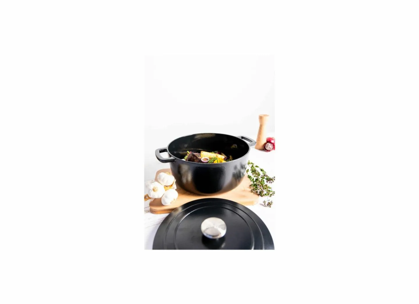 Deze kookpot met diameter 24 cm is gemaakt uit kwalitatief, duurzaam gietijzer en heeft een gladde, witte, geëmailleerde binnenkant. De deksels zijn uitgerust met droplets: kleine pinnetjes die het kookvocht gelijkmatig over de pot verdelen met heerlijk sappige gerechten tot gevolg.