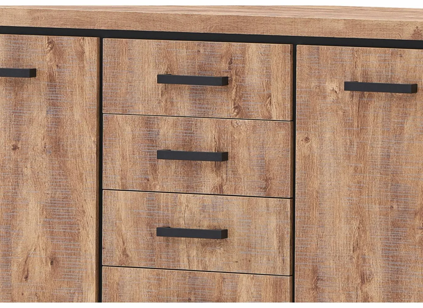 Eetkamer Cronos decor eik met 4 stoelen Crux – tafel 210x100cm – dressoir 218cm – kast 130cm