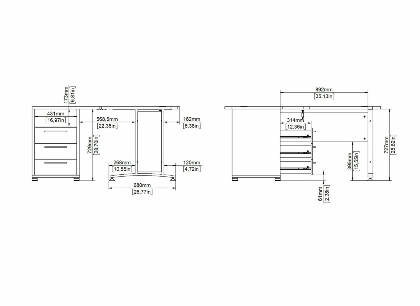 | Materiaal | Meubelplaat afgewerkt met melamine |