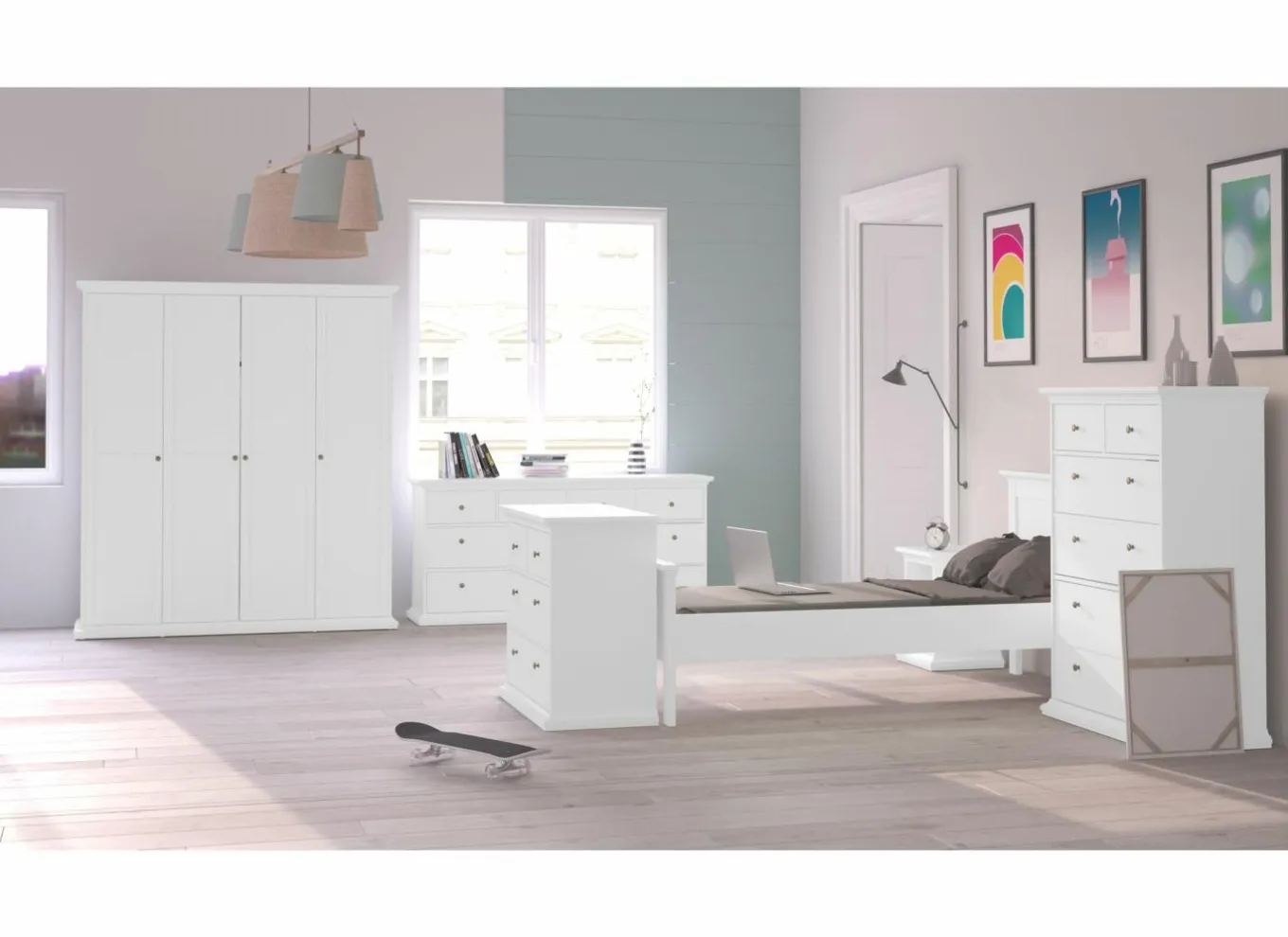 Slaapkamer Eline met bed 160x200cm – kleerkast 225cm – commode 85cm