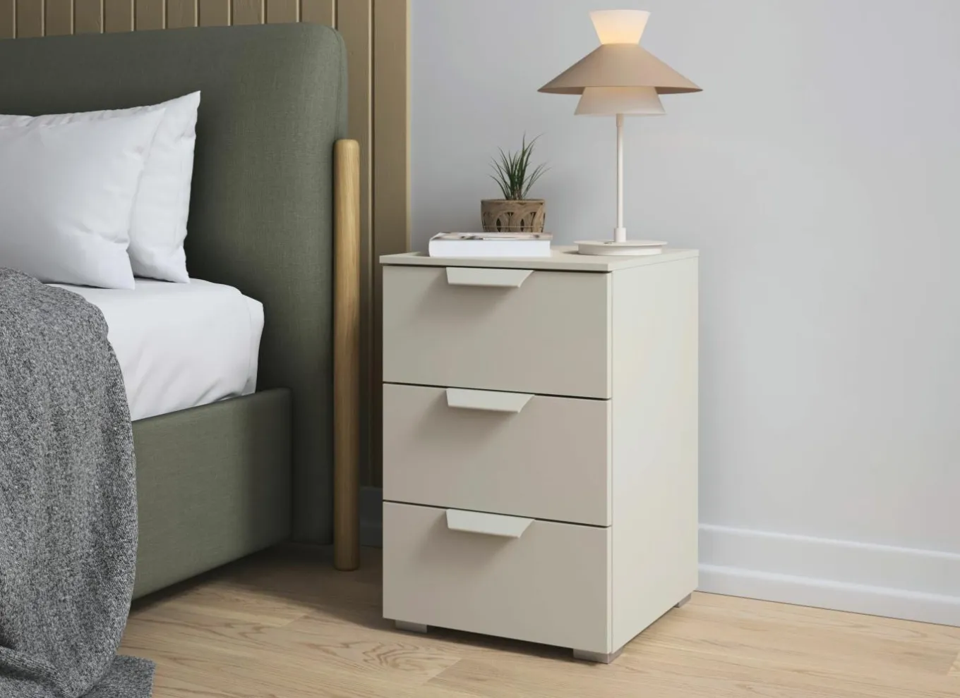 Slaapkamer Tessa met bed 140x200cm – kleerkast 250cm – commode 90cm en 2 nachtkastjes