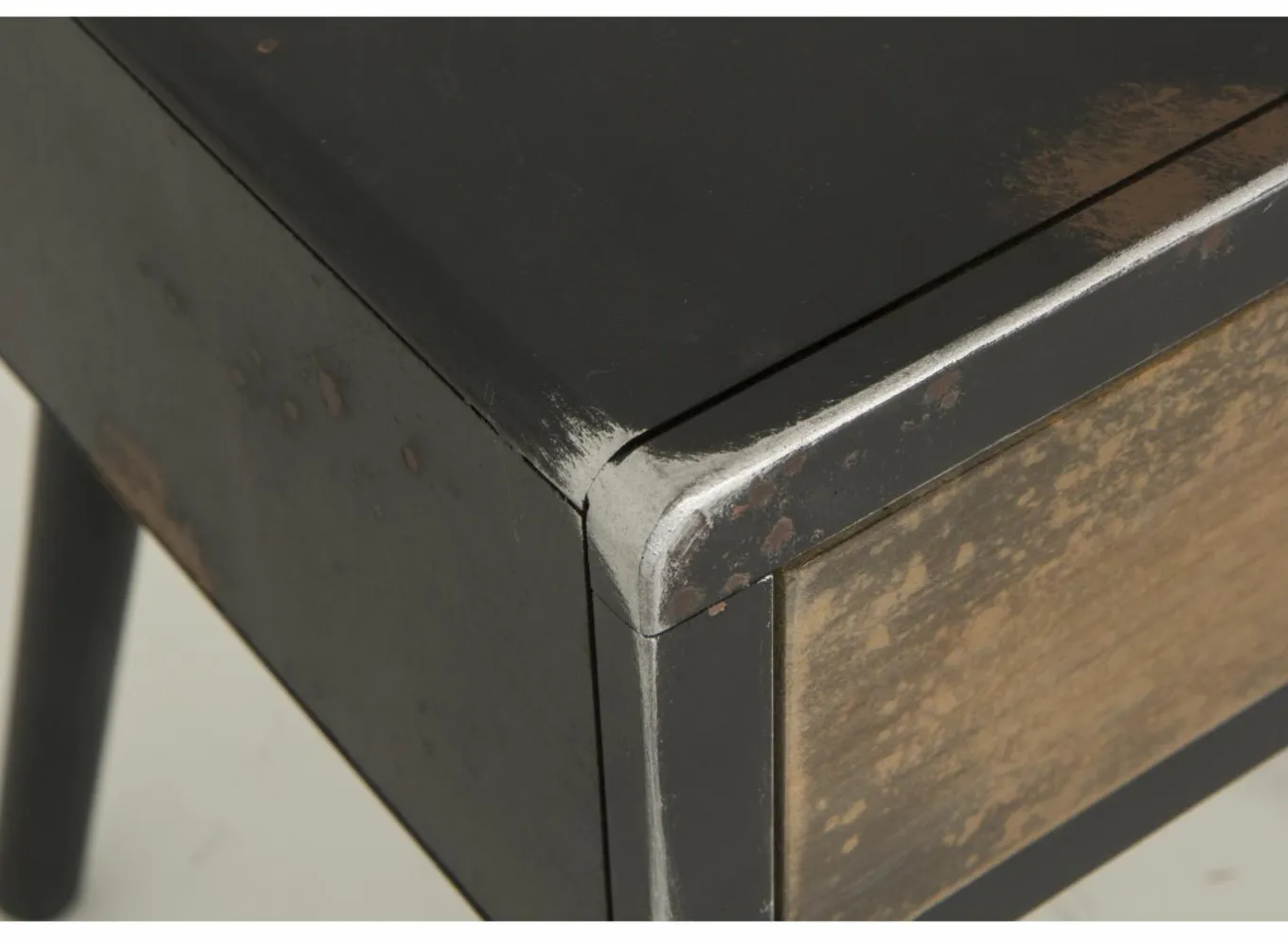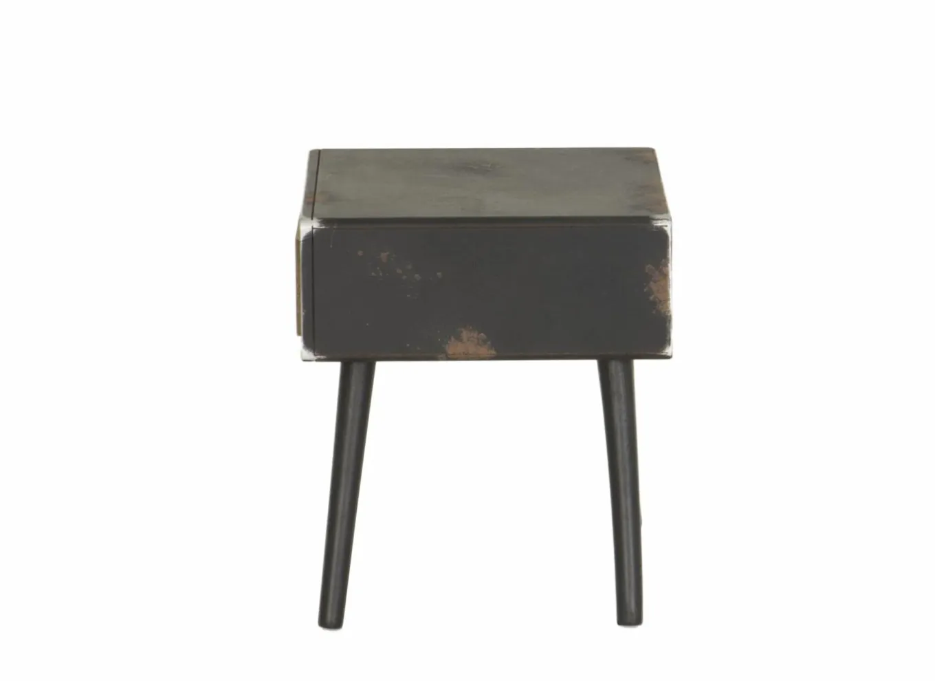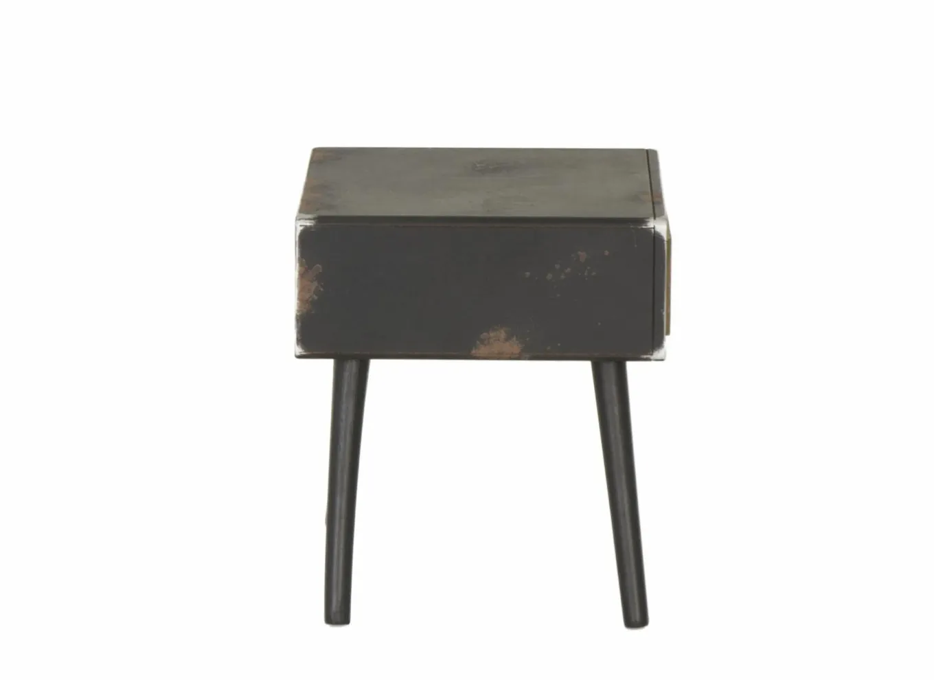 Het meubel is vervaardigd uit massief dennenhout en MDF, afgewerkt in een natuurlijke houtkleur met zwarte details. Deze combinatie geeft het nachtkastje een moderne en toch tijdloze uitstraling, perfect passend in een Scandinavisch, industrieel of landelijk interieur.