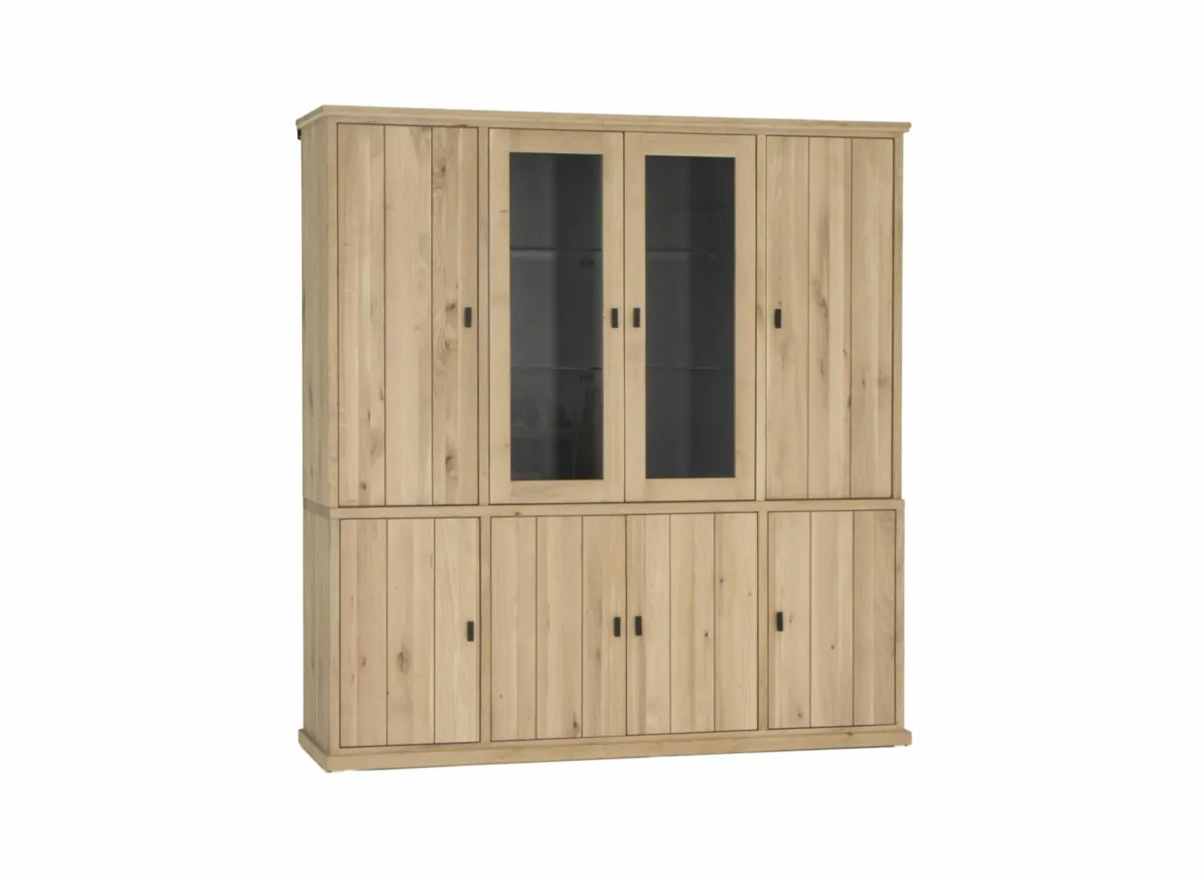 | Materiaal | Eik massief, Meubelplaat afgewerkt met papier, Glas |