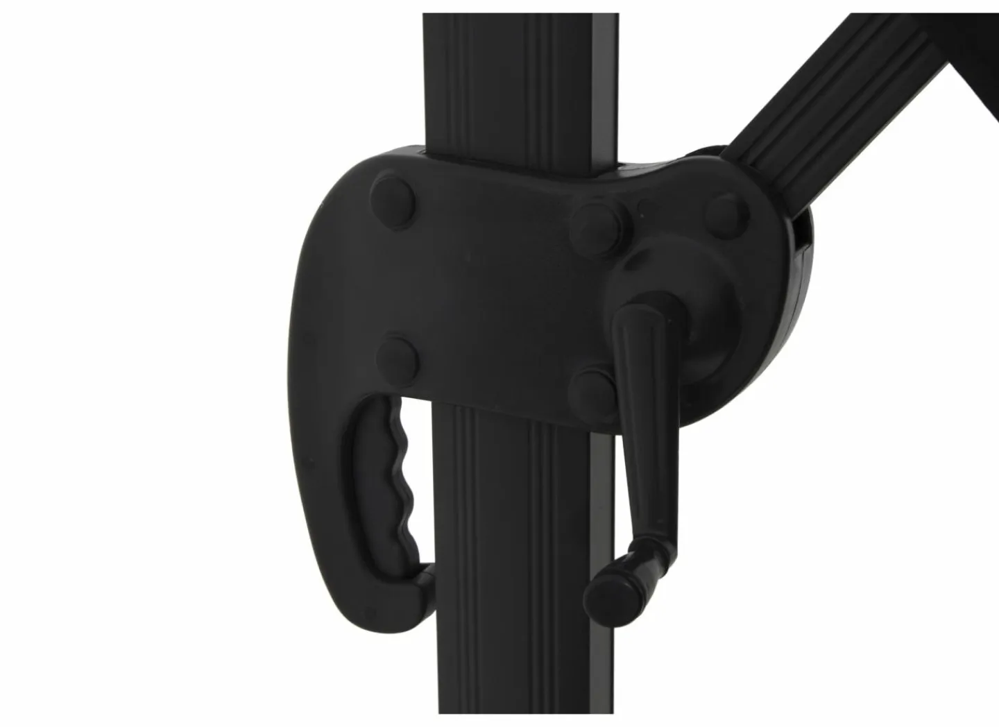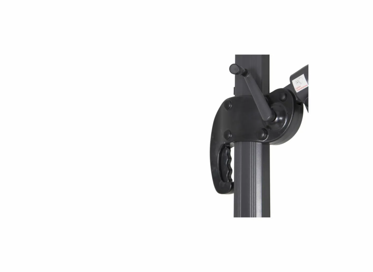 | Opensysteem parasol | Zwengel Een zwengel is een heel eenvoudig systeem. Door aan de zwengel te draaien open of sluit je de staande of zweefparasol. |